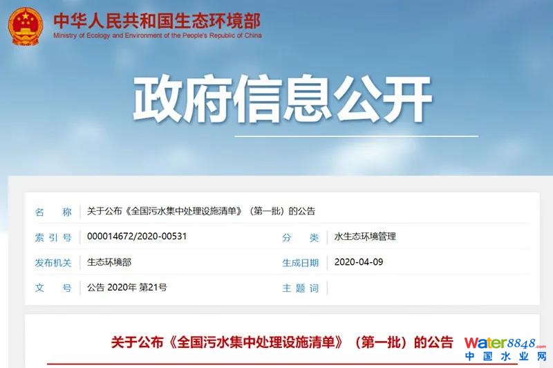 關(guān)于公布《全國污水集中處理設(shè)施清單》(第一批)的公告
