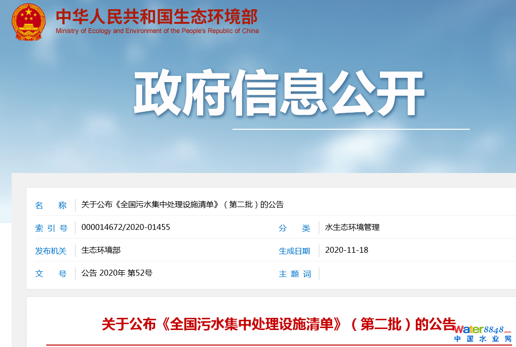 關(guān)于公布《全國污水集中處理設(shè)施清單》(第二批)的公告