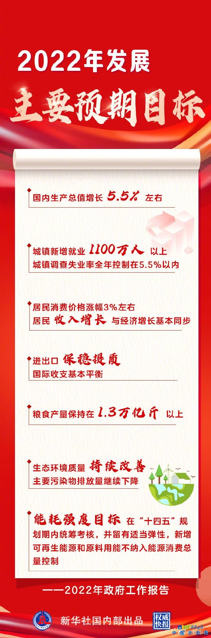 2022年《政府工作報(bào)告》預(yù)期目標(biāo):國(guó)內(nèi)生產(chǎn)總值預(yù)期增長(zhǎng)5.5%左右