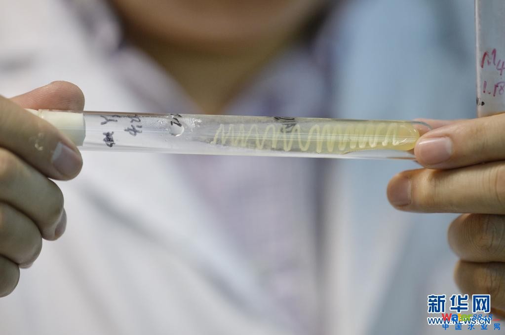 6月2日,在中國科學院成都生物研究所內,李東在展示團隊選育的功能微生物菌種。