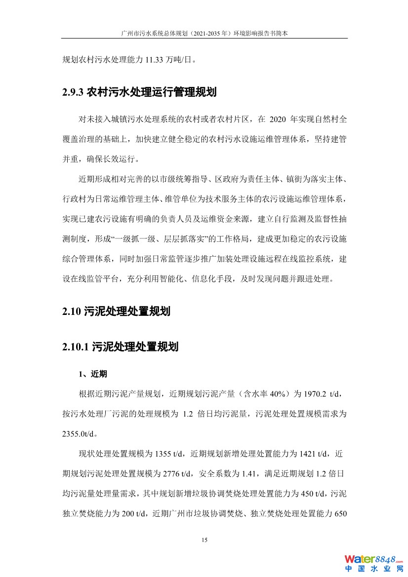 3月7日,《廣州市污水系統(tǒng)總體規(guī)劃(2021-2035年)》環(huán)境影響評(píng)價(jià)在市水務(wù)局網(wǎng)站上進(jìn)行公示,規(guī)劃到2035年廣州全市污水處理廠97座,污水處理廠總規(guī)模1369萬立方米/日,全市城市生活污水集中收集率達(dá)到90%,城鎮(zhèn)污水處理率達(dá)到99%,污水廠污泥無害化處置率達(dá)到100%。
