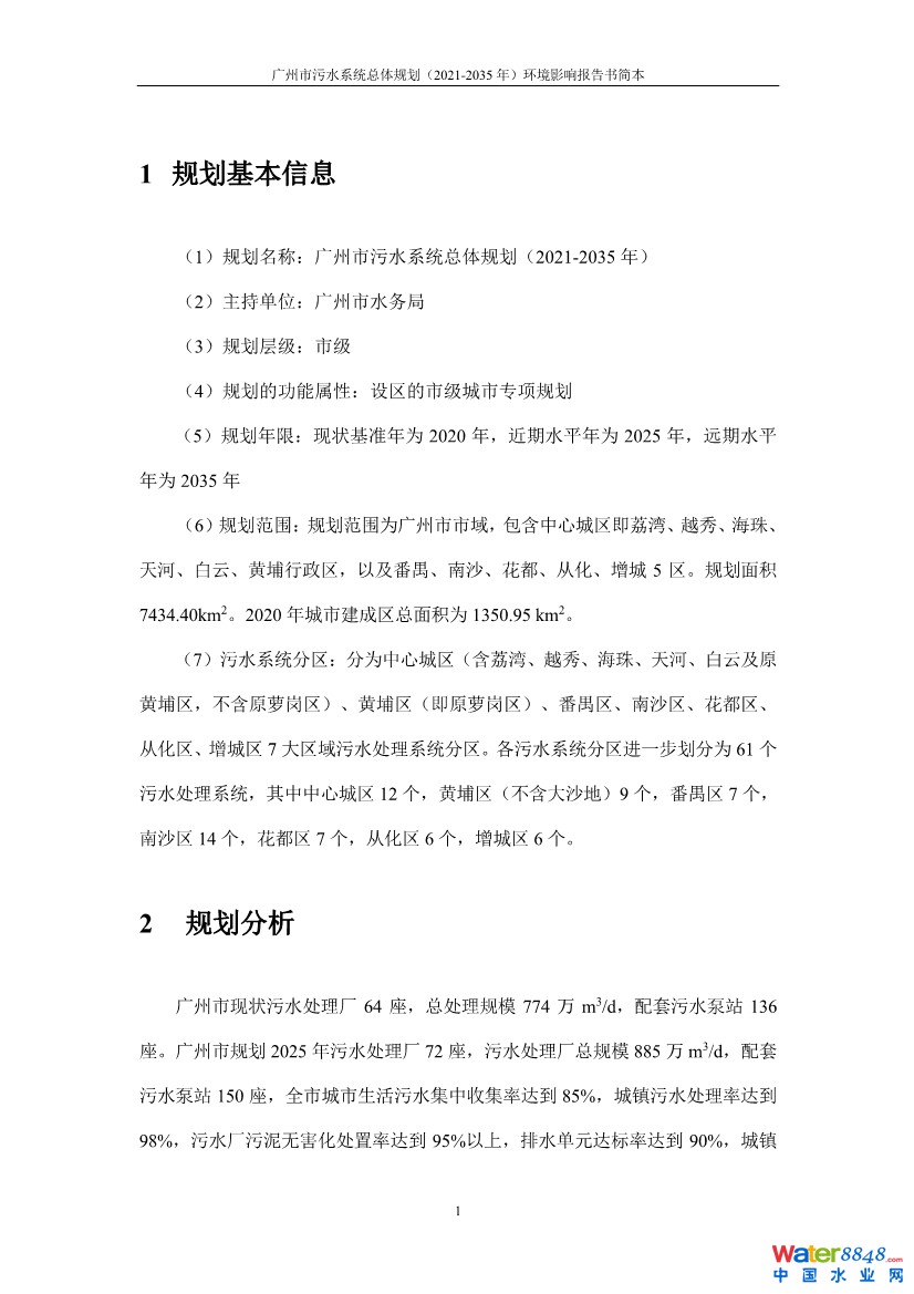 廣州市污水系統(tǒng)總體規(guī)劃(2021-2035年)環(huán)境影響評(píng)價(jià)第二次公示