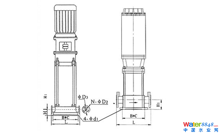 1、該泵為立式、多級(jí)節(jié)段式結(jié)構(gòu),泵進(jìn)出水法蘭處在同一直線上,葉輪采用水力平衡方式平衡軸向力泵下端有一導(dǎo)軸承,軸通過夾殼聯(lián)軸器與電機(jī)軸固定傳動(dòng),外筒為不銹鋼筒;