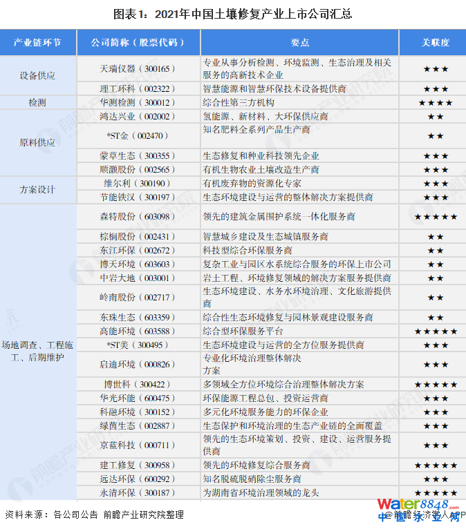 1、土壤修復(fù)產(chǎn)業(yè)上市公司匯總