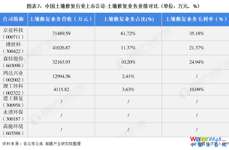 3、土壤修復(fù)行業(yè)上市公司土壤修復(fù)業(yè)務(wù)業(yè)績對比