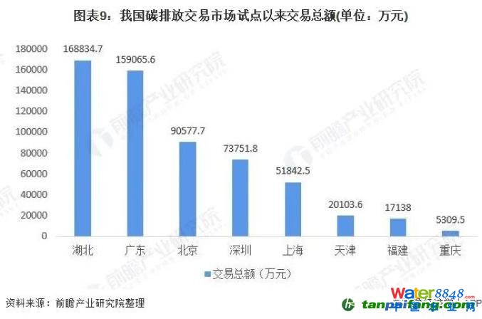 根據(jù)中國碳排放交易網(wǎng)公布的數(shù)據(jù)來看從2013年各地試點(diǎn)以來,湖北省的碳排放權(quán)交易總額為七個(gè)地區(qū)之中最高為16.88億元。