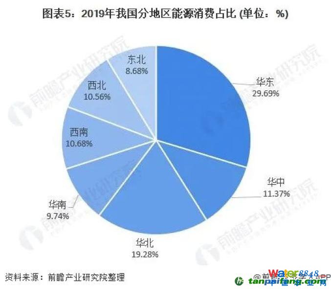 但經(jīng)濟(jì)發(fā)達(dá)的背后意味著高占比的能源消耗,根據(jù)2020年國家能源統(tǒng)計(jì)年鑒所披露的相關(guān)信息,我國2019年華東地區(qū)總能源消費(fèi)占比達(dá)29.69%,是我國七大地區(qū)中能源消費(fèi)量最多的地區(qū)。