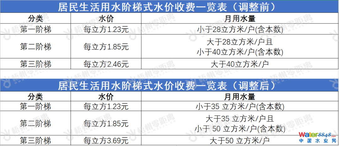 調(diào)整前后的水價(jià)收費(fèi)對(duì)比表 黃倩怡 制表