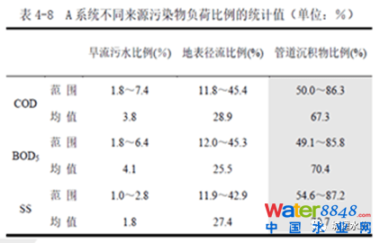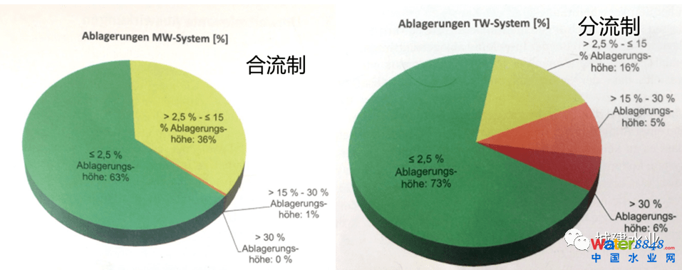 4. 雨天溢流污染太嚴(yán)重。排水管道養(yǎng)護(hù)管理工作最最重要的兩個(gè)字是“清、通”。雨水管是“清”,“清”就是把雨水管道中的積泥“清”出來,讓雨水管做到旱天無積泥、少積泥!污水管是“通”,把積泥“通”到下游去,進(jìn)到污水處理廠,讓污水管無淤積、無堵塞、水暢流!合流管既要“清”、也要“通”,旱天多多“通”,保證低水位時(shí),像污水管一樣,無淤積、無堵塞、水暢流;降雨前還應(yīng)該好好再進(jìn)行“清”。雨水管和合流管都有排河道水體的口門,“清”的目的就是雨天少點(diǎn)污染物入河。只有最大限度地減少管道中的積泥,才能夠減少雨天溢流污染?墒俏鬯堋⒑狭鞴芎陀晁芡荒晁募径际歉咚,甚至是滿管流,這就讓“清、通”養(yǎng)護(hù)變得十分困難,就不可能做到有效地將雨水、合流管中的積泥“清出來”!好比煮了一鍋稀飯,想把米粒都撈干凈,是件很難的事道理是一樣的。圖6是奧地利排水管道中的積泥情況,其大部分管道積泥不超過管徑的1/40。這比我們養(yǎng)護(hù)后要求積泥厚度不大于1/8可好得多啊!管道積泥少了,合流管、雨水管雨天排水口溢流和出流的污染物就少了。圖7是某平原河網(wǎng)地區(qū)城市雨天排水口出流污染的構(gòu)成,在總污染負(fù)荷中,管道積泥的污染負(fù)荷要占到60%以上,可見合流管道、雨水管道清淤工作的重要性之高。圖8是某山地城市雨天合流制排水口污染物變化情況,COD最高可以高達(dá)2000mg/L之巨。