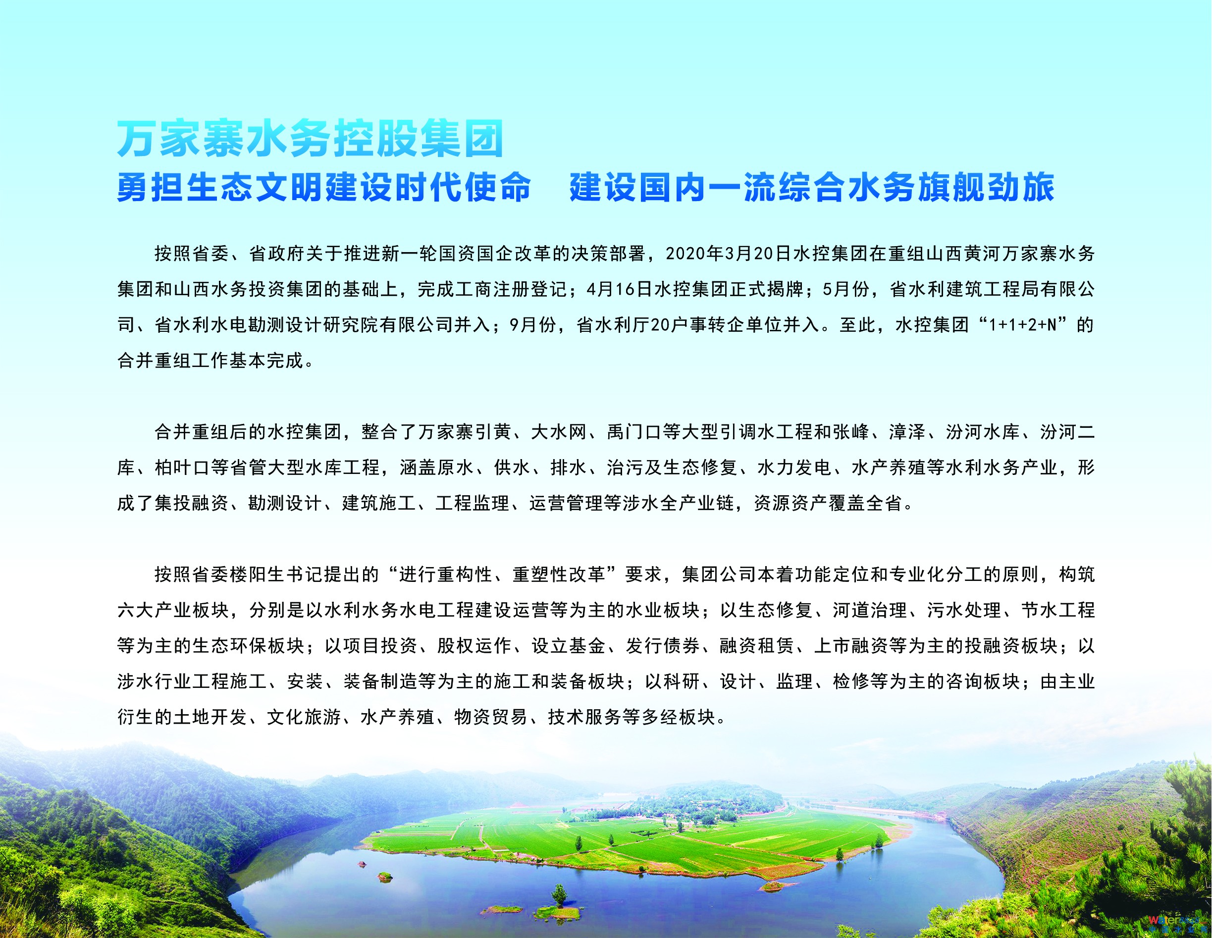 萬(wàn)家寨水務(wù)控股集團(tuán)有限公司是按照省委、省政府改革部署組建的省屬國(guó)有水務(wù)企業(yè)。基本涵蓋了引水、原水、供水、排水、治污及水力發(fā)電、水產(chǎn)養(yǎng)殖、生態(tài)修復(fù)等水利水務(wù)產(chǎn)業(yè),形成了集投融資、勘察設(shè)計(jì)、施工、監(jiān)理、運(yùn)