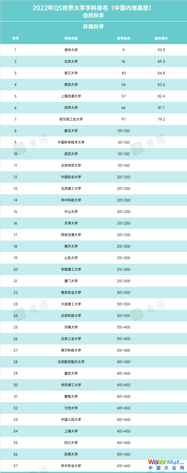2022年QS世界大學(xué)學(xué)科排名,中國(guó)內(nèi)地高校環(huán)境科學(xué)學(xué)科排名如下: