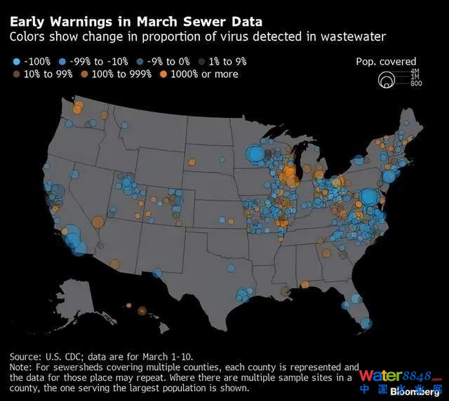 3月15日,根據(jù)彭博社對(duì)美國疾病控制和預(yù)防中心數(shù)據(jù)的分析,一個(gè)監(jiān)測廢水網(wǎng)絡(luò)中新冠病毒的報(bào)告稱,廢水中檢測到的新冠病毒呈躍升趨勢(shì)。