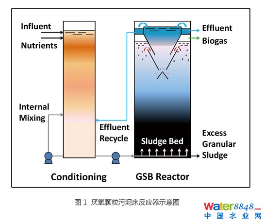 厭氧顆粒污泥床技術(shù)是最有前途的污水處理技術(shù)之一,它適合于濃度較高的污水處理(COD 2,000-20,000mg/L)。在厭氧顆粒污泥反應(yīng)器中,污泥呈顆粒狀,濃度可以達(dá)到傳統(tǒng)工藝的10-20倍甚至更高,密度大、容易分離,因此負(fù)荷高(比普通生化工藝高10-20倍),投資可降低約33%,運行成本降低達(dá)67% (見圖1)。