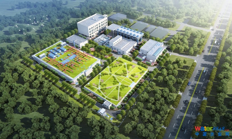位于常熟經(jīng)濟(jì)技術(shù)開發(fā)區(qū)的工業(yè)污水處理項(xiàng)目設(shè)計(jì)鳥瞰圖。