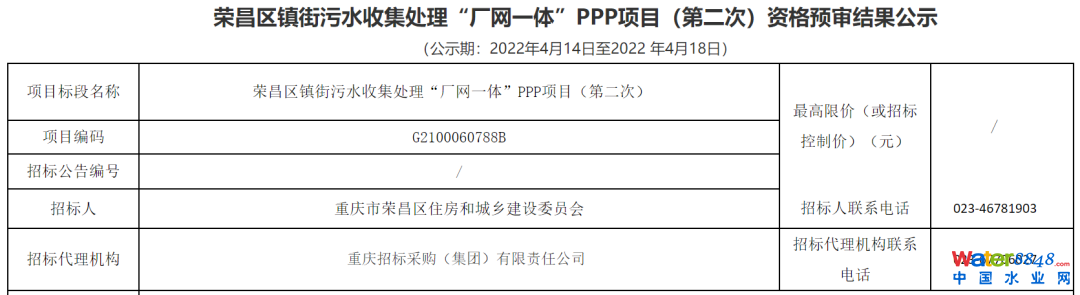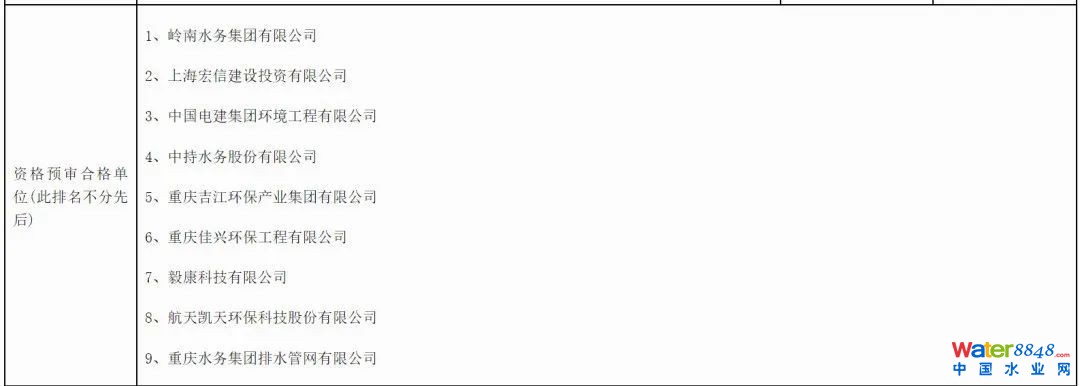 長(zhǎng)江環(huán)保西部管網(wǎng)公司出手!9進(jìn)1!重慶一“廠網(wǎng)一體”PPP項(xiàng)目公示資格預(yù)審結(jié)果
