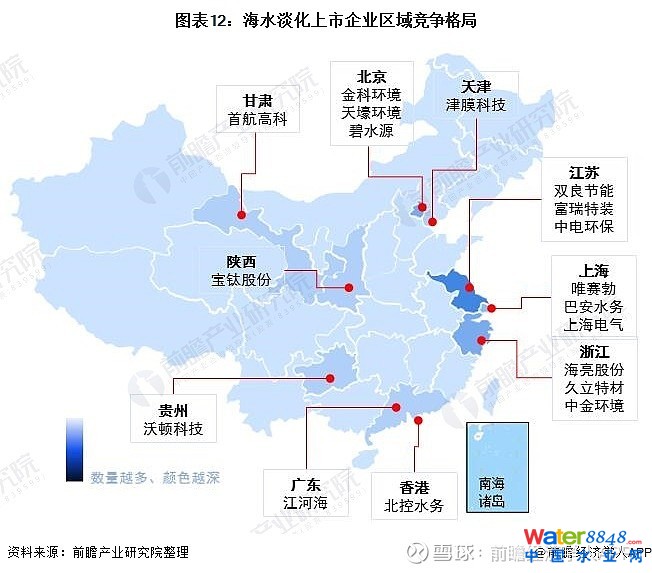 從區(qū)域分布來(lái)看,我國(guó)海水淡化上市企業(yè)較多的省份包括北京、江蘇、上海、浙江等,均為制造業(yè)較為發(fā)達(dá),且經(jīng)濟(jì)發(fā)展較好的地區(qū)。此外,由于上游海水淡化設(shè)備制造還具有資源密集型特征,因此在原材料分布較為集中的甘肅、陜西、貴州等也有均有上市企業(yè)分布。