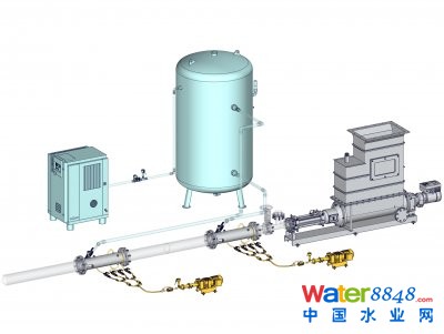 歡迎Editor MR. 來(lái)到您的用戶(hù)通道!更新您的![]() ![]() 污泥長(zhǎng)距離輸送方案 螺桿泵專(zhuān)家SEEPEX開(kāi)發(fā)了一款定制系統(tǒng)解決方案,它結(jié)合了兩種輸送技術(shù)的優(yōu)勢(shì),以一種特別節(jié)能的方式實(shí)現(xiàn)大量脫水污泥的長(zhǎng)距離輸送。老式氣動(dòng)系統(tǒng)可說(shuō)是這一開(kāi)創(chuàng)性技術(shù)的鼻祖。新技術(shù)采用智能空氣注射(SAI)將污泥壓縮成柱塞,然后使用壓縮空氣不斷推進(jìn)長(zhǎng)達(dá)1000米管道。這種傳統(tǒng)工藝的新替代方案已經(jīng)在許多歐洲工廠安裝,并很快為廢水處理公司帶來(lái)回報(bào)。 ![]() 由于新技術(shù)的出現(xiàn),長(zhǎng)管道不再是缺點(diǎn)。當(dāng)涉及到處理脫水污泥時(shí),這一點(diǎn)尤其重要。許多應(yīng)用場(chǎng)合,例如磷酸鹽回收廠,越來(lái)越需要長(zhǎng)距離運(yùn)輸污泥。眾多的優(yōu)勢(shì)使新系統(tǒng)成為私有和市政污水處理廠的一個(gè)有吸引力的選擇。該系統(tǒng)不僅滿足最遠(yuǎn)距離為1000米的最新要求,而且非常經(jīng)濟(jì),因?yàn)榭偼顿Y成本、后續(xù)費(fèi)用和運(yùn)行成本都相對(duì)較低。 壓力下的污泥 對(duì)于這種系統(tǒng)解決方案,開(kāi)發(fā)商采用了螺桿泵輸送和密相氣力輸送相結(jié)合的方式。新工藝只需使用由塑料制成的低成本管道系統(tǒng),該系統(tǒng)不僅在采購(gòu)時(shí)投資較小,而且還能降低維護(hù)和操作成本等運(yùn)行費(fèi)用。得益于低能耗、兩年維護(hù)周期以及更便宜的備件,該方案的運(yùn)行成本顯著較低。維護(hù)所需的時(shí)間只需幾小時(shí),并且由于部件重量較輕,通?捎蓡稳送瓿,不需要額外的起重機(jī)/吊車(chē)設(shè)備。由于原位維護(hù)的設(shè)計(jì),不需要拆卸管道。較低的壓力水平還確保了部件使用壽命的延長(zhǎng)和泵占地面積的減小。此外,自動(dòng)化系統(tǒng)解決方案以及過(guò)程監(jiān)控可以通過(guò)傳統(tǒng)的總線接口集成到現(xiàn)有的自動(dòng)化和控制系統(tǒng)中。所有功能部件、傳感器和執(zhí)行器一并打包提供,并集成到控制軟件中。 對(duì)于廢水處理公司來(lái)說(shuō),SAI系統(tǒng)是傳統(tǒng)系統(tǒng)的高能效、高性能替代方案。作為定制的輸送解決方案,它旨在滿足工廠的要求,在現(xiàn)場(chǎng)實(shí)現(xiàn)參數(shù)化,并優(yōu)化能耗。 挑戰(zhàn) 長(zhǎng)距離輸送脫水污泥是廢水處理設(shè)備面臨的主要挑戰(zhàn):介質(zhì)的高粘度和磨損性意味著需要克服輸送管道中的巨大壓力損失。在某些情況下,需要使用順序泵送解決方案,如帶多驅(qū)動(dòng)裝置的帶式輸送機(jī)或螺旋輸送機(jī)。由于它們具備多個(gè)驅(qū)動(dòng)單元,通常會(huì)帶來(lái)高能耗和高維護(hù)要求。此外,它們經(jīng)常暴露在環(huán)境中,可能帶來(lái)令人不快的氣味及被雨水沖開(kāi),并且垂直或復(fù)雜的輸送會(huì)導(dǎo)致低效。另外一種方法是封閉管道與多級(jí)螺桿泵或某些情況下與活塞泵結(jié)合使用,這些泵特別適用于高粘度介質(zhì)和高壓。然而,由于反壓較大,它們需要相對(duì)較高的耐壓管道投資成本(在某些情況下超過(guò)PN100)。尤其是活塞泵還具有很高的維護(hù)要求和成本,維護(hù)停機(jī)時(shí)間長(zhǎng),以及相對(duì)較高的驅(qū)動(dòng)功率和能量消耗。 新的泵送解決方案 SAI系統(tǒng)解決了上述問(wèn)題。在該系統(tǒng)中,首先通過(guò)料斗泵在壓力管線中壓縮和壓實(shí)污泥柱塞,[見(jiàn)圖1.a)和1.b)],然后通過(guò)脈沖壓縮空氣噴射向前輸送[見(jiàn)圖1.c)]。空氣注射通過(guò)針對(duì)應(yīng)用優(yōu)化的算法進(jìn)行壓力控制(見(jiàn)圖2)。氣動(dòng)輸送的污泥柱塞也封裝在聚合物溶液中。這減少了管道中的摩擦,從而提高了整個(gè)系統(tǒng)的能效。 泵輸送和密相氣力輸送的結(jié)合永久地將整個(gè)輸送管道中的壓力降低到非常低的水平(見(jiàn)圖2,最大壓力約4 Bar)。它直接來(lái)源于最初壓縮污泥柱塞運(yùn)動(dòng)所需的能量。一旦靜摩擦力被克服,污泥柱塞被其后面流動(dòng)的膨脹壓縮空氣加速,這再次降低了管道中的壓力水平(見(jiàn)圖2),F(xiàn)場(chǎng)調(diào)整系統(tǒng)參數(shù),如聚合物流量和空氣流量,可以設(shè)定工廠特定的能量?jī)?yōu)化操作點(diǎn)。 ![]() 圖1:采用聚合物注入和密相氣力輸送的污水污泥輸送系統(tǒng)流程示意圖。a)壓縮污泥柱塞,直到b)在管道中達(dá)到最佳壓縮水平。c)打開(kāi)壓縮空氣閥,使用壓縮空氣將污泥柱塞推進(jìn)料倉(cāng)。d)輸送管道中壓力下降。 較低的管道壓力允許使用更薄、更便宜的管道(PN10至PN16),從而顯著降低投資成本,長(zhǎng)距離輸送尤其顯著。此外,更小的單級(jí)漏斗泵可以與優(yōu)化的專(zhuān)利維護(hù)技術(shù)一起使用,這將維護(hù)需求降至最低(轉(zhuǎn)子/定子更換不到一小時(shí)),并且能耗相對(duì)較低。 ![]() 圖2:污泥管道注入點(diǎn)的壓力曲線示意圖。當(dāng)達(dá)到預(yù)定的壓力水平時(shí),注入壓縮空氣幾秒鐘,ΔTinj,之后污泥管道中的壓力下降Δp。然后使用螺桿泵幾分鐘,Δt,將新的污泥栓塞泵入管道,直到進(jìn)行另一次壓縮空氣注入。標(biāo)記的時(shí)間a)...d)對(duì)應(yīng)于圖1所示的條
