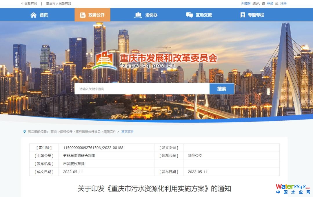 重慶市發(fā)展改革委消息,《重慶市污水資源化利用實施方案》(下稱《方案》)已于近日印發(fā)。