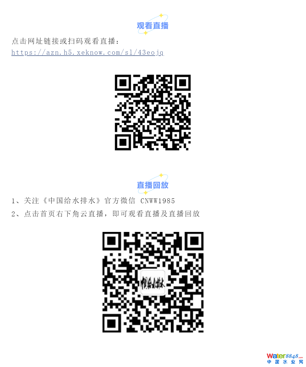 另外,配合本次直播組織了三個答謝活動:1、凡是今天15:30 前轉(zhuǎn)發(fā),并成功邀請其他同事、網(wǎng)友觀看本場直播的行業(yè)同仁,我們特贈送2021年污水大會及污泥大會直播視頻回放觀看碼和 污水大會論文集、污泥大會論文集、中國給水排水雜志各1本。有需要的網(wǎng)友請和中國給水排水雜志社的孫磊、金晟聯(lián)系。2、轉(zhuǎn)發(fā)直播邀請,排名前20者,贈送中國給水排水雜志電子期刊最新版1套。3、直播交流互動區(qū)抽獎,中獎?wù)攉@中國給水排水電子期刊最新版1套。