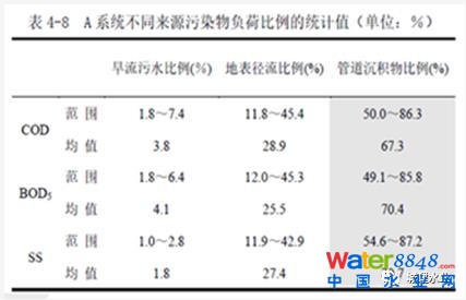 4. 雨天溢流污染太嚴(yán)重。排水管道養(yǎng)護(hù)管理工作最最重要的兩個字是“清、通”。雨水管是“清”,“清”就是把雨水管道中的積泥“清”出來,讓雨水管做到旱天無積泥、少積泥!污水管是“通”,把積泥“通”到下游去,進(jìn)到污水處理廠,讓污水管無淤積、無堵塞、水暢流!合流管既要“清”、也要“通”,旱天多多“通”,保證低水位時,像污水管一樣,無淤積、無堵塞、水暢流;降雨前還應(yīng)該好好再進(jìn)行“清”。雨水管和合流管都有排河道水體的口門,“清”的目的就是雨天少點(diǎn)污染物入河。只有最大限度地減少管道中的積泥,才能夠減少雨天溢流污染。可是污水管、合流管和雨水管往往一年四季都是高水位,甚至是滿管流,這就讓“清、通”養(yǎng)護(hù)變得十分困難,就不可能做到有效地將雨水、合流管中的積泥“清出來”!好比煮了一鍋稀飯,想把米粒都撈干凈,是件很難的事道理是一樣的。圖6是奧地利排水管道中的積泥情況,其大部分管道積泥不超過管徑的1/40。這比我們養(yǎng)護(hù)后要求積泥厚度不大于1/8可好得多啊!管道積泥少了,合流管、雨水管雨天排水口溢流和出流的污染物就少了。圖7是某平原河網(wǎng)地區(qū)城市雨天排水口出流污染的構(gòu)成,在總污染負(fù)荷中,管道積泥的污染負(fù)荷要占到60%以上,可見合流管道、雨水管道清淤工作的重要性之高。圖8是某山地城市雨天合流制排水口污染物變化情況,COD最高可以高達(dá)2000mg/L之巨。
