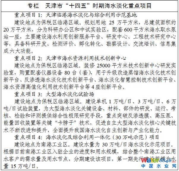 天津市海水淡化產(chǎn)業(yè)發(fā)展“十四五”規(guī)劃