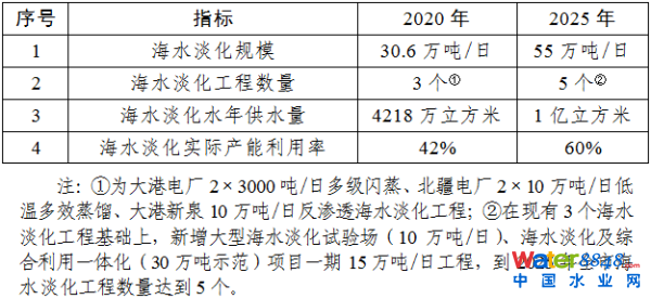 天津市“十四五”時期海水淡化產(chǎn)業(yè)發(fā)展主要指標(biāo)