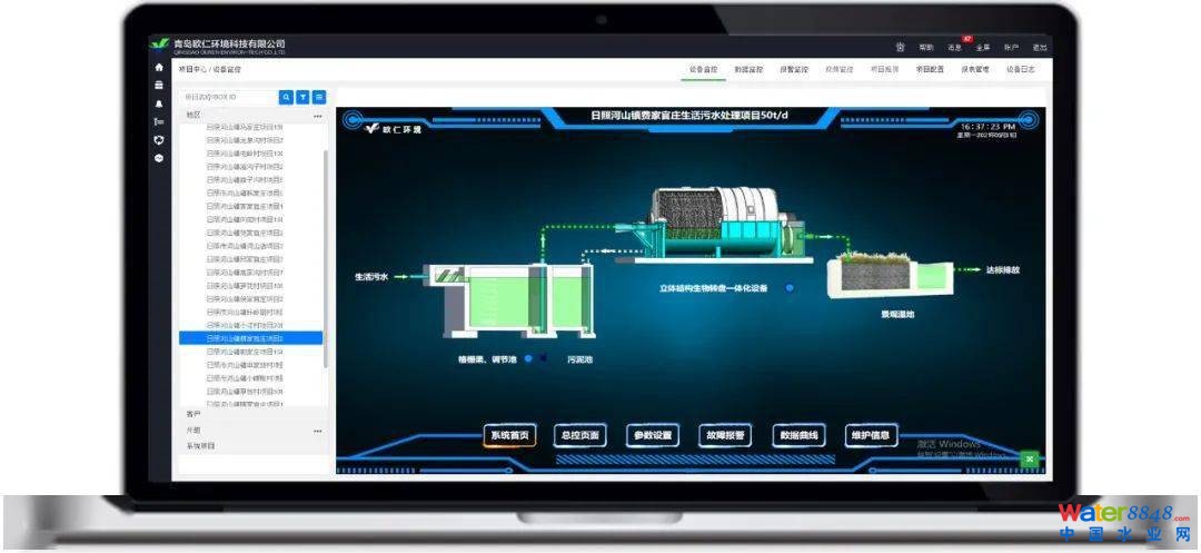 摘要:山東省日照市某鎮(zhèn)域內(nèi)行政村存在生活污水橫流、亂排亂倒現(xiàn)象,污染了周邊水體,影響了農(nóng)村人居生活環(huán)境。為解決此問題,該鎮(zhèn)因地制宜、統(tǒng)籌規(guī)劃,對鎮(zhèn)域內(nèi)23個(gè)居住相對集中且污水排放量較高的單村或聯(lián)村,采用青島歐仁環(huán)境科技有限公司的3D-RBC立體結(jié)構(gòu)生物轉(zhuǎn)盤技術(shù)建設(shè)污水處理站進(jìn)行集中處理。該項(xiàng)目采用專業(yè)化污水處理團(tuán)隊(duì)與國企聯(lián)合運(yùn)營、智慧水務(wù)云平臺(tái)遠(yuǎn)程物聯(lián)網(wǎng)運(yùn)營,實(shí)行鎮(zhèn)督導(dǎo)、村落實(shí)、運(yùn)營班組實(shí)施的管理運(yùn)營模式。自2020年10月開始運(yùn)行至今,3D-RBC立體結(jié)構(gòu)生物轉(zhuǎn)盤技術(shù)處理效果較好,在進(jìn)水COD、氨氮分別為168.0~387.8、23.1~93.2 mg/L的條件下,出水COD和氨氮分別為16.6~47.5、0.9~4.4 mg/L,達(dá)到了《城鎮(zhèn)污水處理廠污染物排放標(biāo)準(zhǔn)》(GB18918—2002)的一級(jí)A標(biāo)準(zhǔn)。該項(xiàng)目采用3D-RBC立體結(jié)構(gòu)生物轉(zhuǎn)盤一體化設(shè)備,無需風(fēng)機(jī)曝氣,生化部分噸水占地0.12m2/m3污水,生物轉(zhuǎn)盤噸水電耗為0.12kW·h/m3污水。3D-RBC立體結(jié)構(gòu)生物轉(zhuǎn)盤技術(shù)具有占地面積小、運(yùn)行成本低、操作簡便、運(yùn)行穩(wěn)定的優(yōu)點(diǎn);采用智慧水務(wù)云平臺(tái)運(yùn)營系統(tǒng),可大大提高運(yùn)營效率。