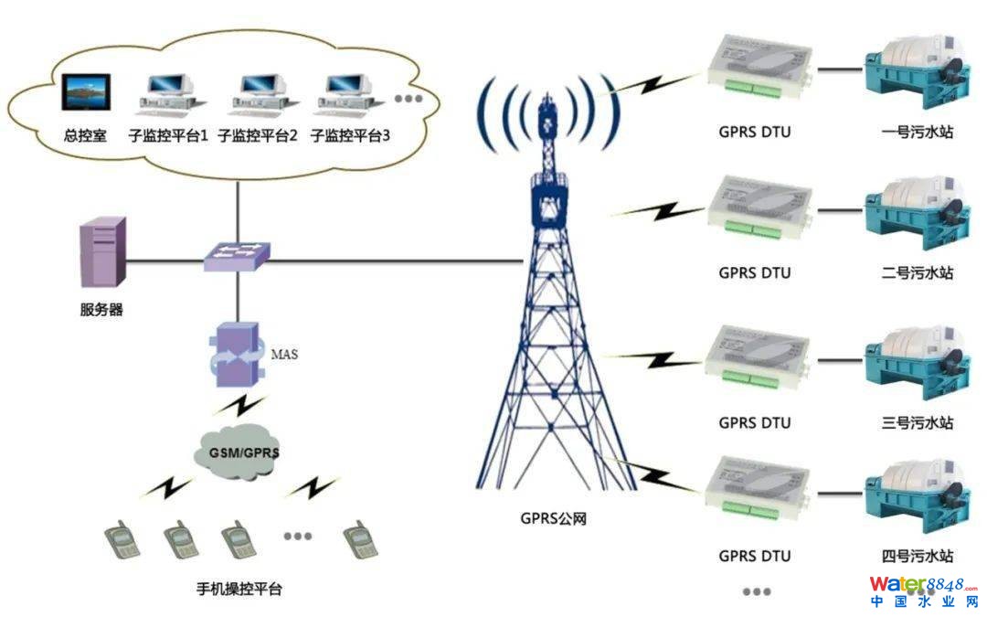 在項(xiàng)目運(yùn)營方面,采用專業(yè)化污水處理團(tuán)隊(duì)與國企聯(lián)合運(yùn)維,實(shí)行鎮(zhèn)督導(dǎo)、村落實(shí)、運(yùn)維班組實(shí)施的管理運(yùn)維模式。運(yùn)維團(tuán)隊(duì)引入物聯(lián)網(wǎng)技術(shù)對污水站進(jìn)行智能化管理,采用物聯(lián)網(wǎng)+智慧云平臺(tái)運(yùn)營管理模式,通過物聯(lián)網(wǎng)和3G/4G/5G技術(shù),將生活污水處理站點(diǎn)數(shù)據(jù)實(shí)時(shí)傳遞到監(jiān)控室的集中監(jiān)控中心,以實(shí)現(xiàn)對系統(tǒng)的統(tǒng)一監(jiān)控和分布式管理。通過電腦或手機(jī)客戶端即可遠(yuǎn)程監(jiān)測和調(diào)控污水處理終端的運(yùn)行情況,實(shí)現(xiàn)各工藝單元設(shè)備運(yùn)行數(shù)據(jù)的實(shí)時(shí)采集,保障污水站運(yùn)行穩(wěn)定性,減少運(yùn)維人員的日常巡檢工作。該項(xiàng)目的運(yùn)營示意圖如下。