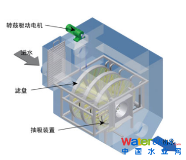 濾布濾池 取代二沉池,生物轉(zhuǎn)盤出水進(jìn)入濾池后,在壓差的作用下,通過微孔濾布進(jìn)入濾盤,固體懸浮物被截留在濾布外側(cè),濾液通過濾盤向出水管匯集并經(jīng)出水口排出濾池。 |