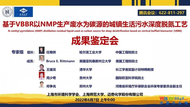 2022年6月7日,由上海師范大學與邁奇化學股份有限公司合作承擔的“基于VBBR以NMP生產廢水為碳源的城鎮(zhèn)生活污水深度脫氮工藝”項目通過了由上海市環(huán)境科學學會主持的專家鑒定。