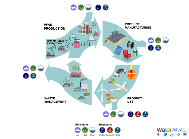 全氟和多氟化合物(PFAS)是一種人造化學(xué)品,由于其防水防油等特性,自1940年以來PFAS一直被用于工業(yè)和消費(fèi)品中,因此人一生中難以避免地暴露于PFAS,污染來源可能是與PFAS加工制造應(yīng)用相關(guān)的職業(yè)、被PFAS污染的飲用水、可能含有 PFAS 的食物、受污染的土壤或灰塵、含有PFAS的空氣、由PFAS制成或使用含有PFAS的材料包裝的產(chǎn)品等等 【1.2】。