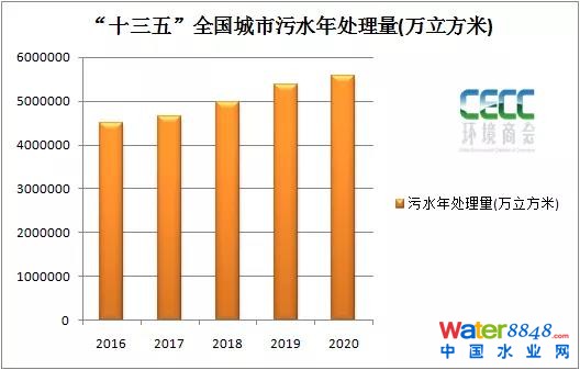 截至2020年,城市及縣城污水處理廠共4326座,較“十二五”末新增783座,其中,城市污水處理廠2618座,五年累計(jì)新增674座。污水廠處理能力19267萬立方米/日,較“十二五”末增長37.2%。