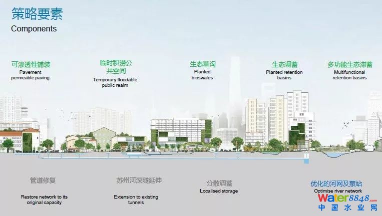利用城市的數(shù)據(jù),對用地數(shù)據(jù)、基礎(chǔ)設(shè)施的潛力進(jìn)行分析。最終為上海提出的策略是一種綠色、藍(lán)色和灰色相結(jié)合的方法,以最大限度地發(fā)揮出基礎(chǔ)設(shè)施的潛力。