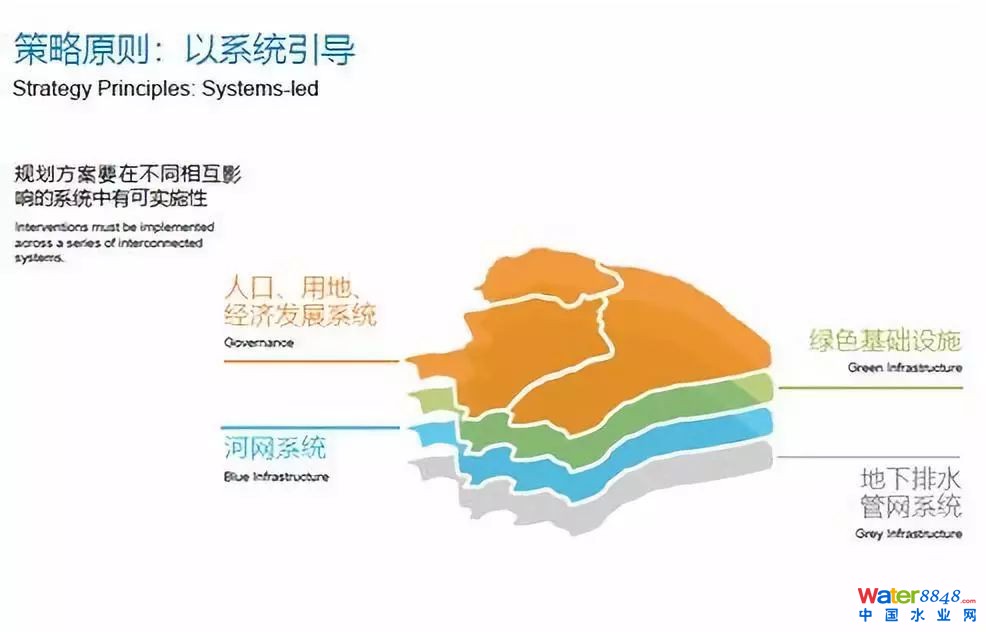 通過以往的項目經(jīng)驗所制定的四個關(guān)鍵原則驅(qū)動。以系統(tǒng)引導(dǎo)的工作方法,制定藍(lán)綠基礎(chǔ)設(shè)施的實施。策略制定和實施的關(guān)鍵就是現(xiàn)有排水系統(tǒng)的治理,另外還有藍(lán)、綠、灰色基礎(chǔ)設(shè)施。