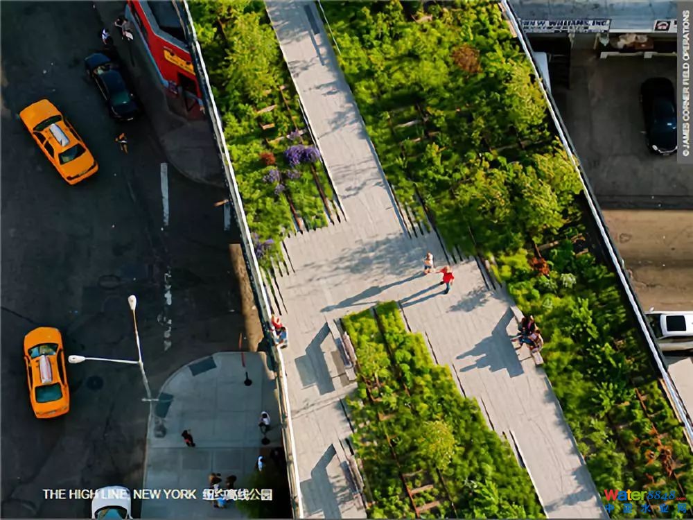 如何更好地將藍(lán)綠色基礎(chǔ)設(shè)施系統(tǒng)融入其他基礎(chǔ)設(shè)施?需要將藍(lán)綠色基礎(chǔ)設(shè)施建設(shè)融入街道和房屋改造中,在沒有機動車的區(qū)域里面,非常有助于為藍(lán)綠色的系統(tǒng)創(chuàng)造空間。另外也可以尋找一些冗余的城市空間。其中紐約非常著名的高線公園,就是尋求城市中可以融入綠色基礎(chǔ)設(shè)施的典型代表。