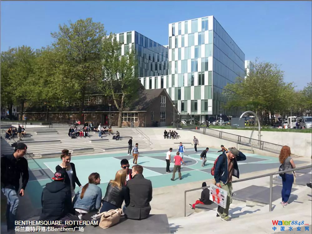 除了環(huán)境教育,藍(lán)綠基礎(chǔ)設(shè)施也具有非常強的能力,為街道、人行道、屋頂、公園、停車場增加基礎(chǔ)設(shè)施的計劃。通過使用這些措施,每年節(jié)約差不多56億美元的成本。鹿特丹是60%人口生活在海平面以下的城市,水上廣場同時也是體育公園,可以在雨洪來臨的時候被暫時淹沒。