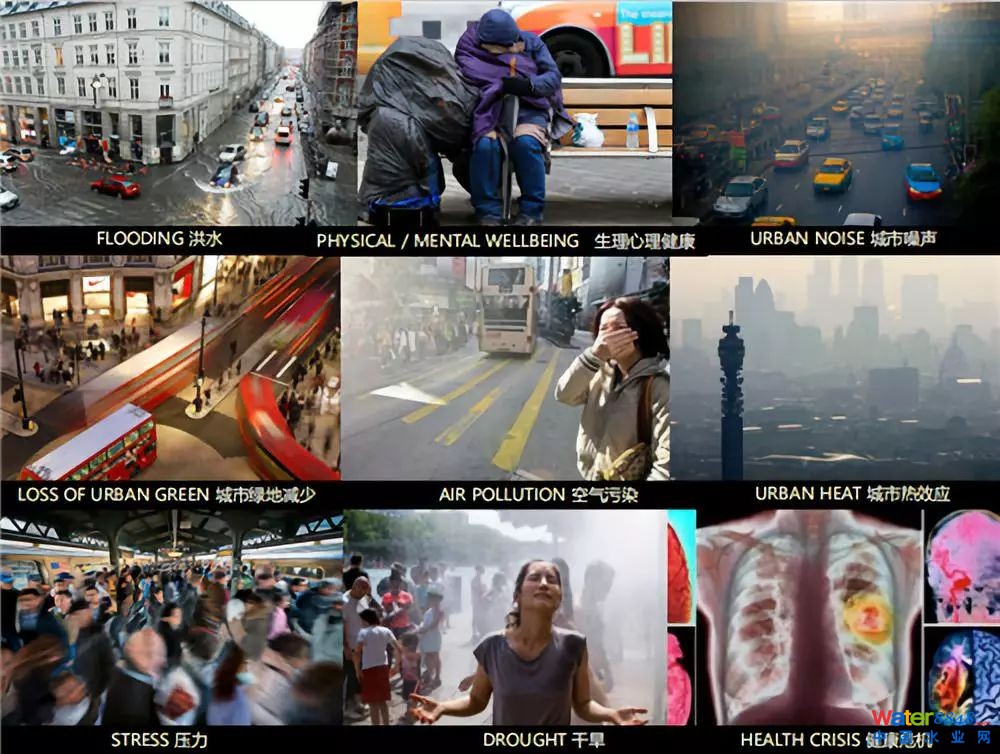 城市化、氣侯變化、老化的基礎(chǔ)設(shè)施,都對水管理構(gòu)成了挑戰(zhàn)。目前世界城市人口已經(jīng)達(dá)到空前數(shù)量,給城市帶來了巨大的壓力,引發(fā)了全球性的身心健康危機,造成巨大的財政負(fù)擔(dān)。氣侯變化引起了很多問題,其中一項就是水的問題,包括城市內(nèi)澇和水資源短缺的問題,傳統(tǒng)的水管理方法需要被重新審視,以適應(yīng)這些變化。