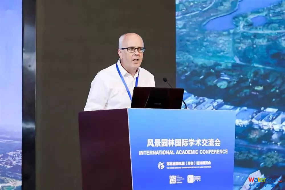 2019年8月28日下午,第三屆(邢臺)園林博覽會“風(fēng)景園林國際學(xué)術(shù)交流會”在邢臺市萬峰大酒店召開。英國 Arup(奧雅納)集團(tuán)董事、聯(lián)合國環(huán)境規(guī)劃署項目主任Justin Abbott在會上發(fā)表題為《水設(shè)計——通過整合藍(lán)、綠、灰色基礎(chǔ)設(shè)施提高城市韌性》的演講。他通過世界各地的一些案例,闡述了城市藍(lán)、綠基礎(chǔ)設(shè)施的概念、作用以及實施途徑。