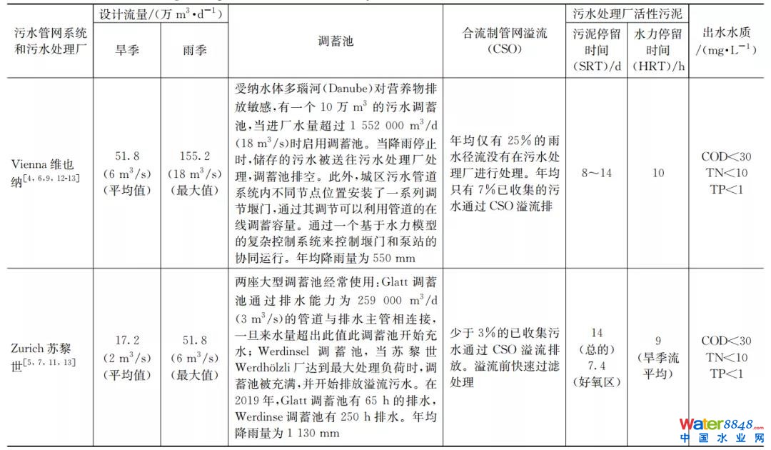 表1 維也納和蘇黎世污水管網(wǎng)系統(tǒng)和VMWWTP和Werdhölzli污水處理廠的主要設(shè)計(jì)和運(yùn)行數(shù)據(jù)