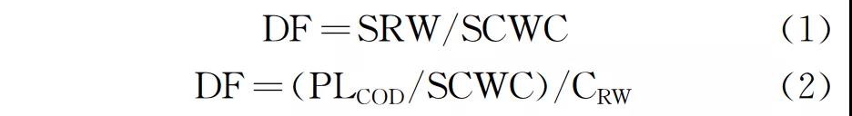 式中 SRW 為人日均管網(wǎng)中混合污水量;SCWC為人日均綜合用水量;PLCOD為人日均COD排放量;CRW 為管網(wǎng)中污水COD濃度。由于經(jīng)常缺乏SRW數(shù)據(jù),實(shí)際上式(2)被更多地用于計(jì)算稀釋倍數(shù)。