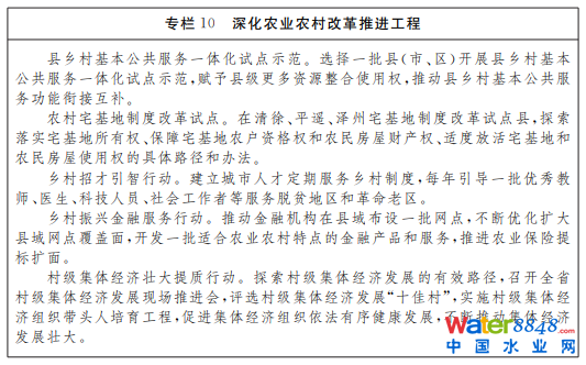 協(xié)同推進農(nóng)村各項配套改革。持續(xù)深化農(nóng)村集體林權(quán)制度改革,健全集體林業(yè)運行機制,增強林業(yè)發(fā)展活力。全面完成農(nóng)業(yè)綜合行政執(zhí)法改革目標(biāo)任務(wù),構(gòu)建權(quán)責(zé)明晰、上下貫通、指揮順暢、運行高效、保障有力的農(nóng)業(yè)綜合行政執(zhí)法體系。全面推進“五水綜改”和農(nóng)業(yè)水價綜合改革,打破水瓶頸,強化水支撐。深化供銷合作社綜合改革,推進生產(chǎn)、供銷、信用“三位一體”綜合合作試點,健全服務(wù)農(nóng)民生產(chǎn)生活綜合平臺。