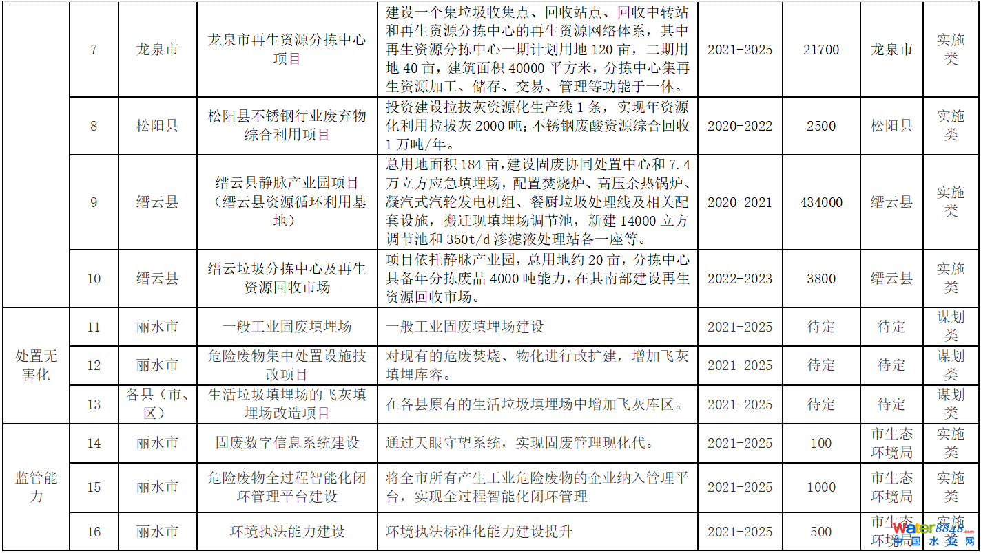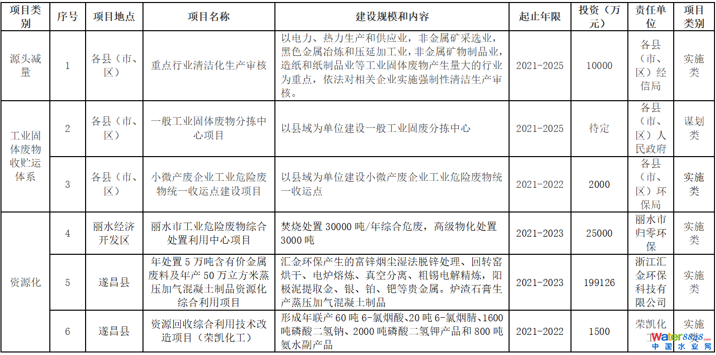 各重點工程建設內(nèi)容見附表1麗水市“十四五”工業(yè)固廢污染防治重點工程表。
