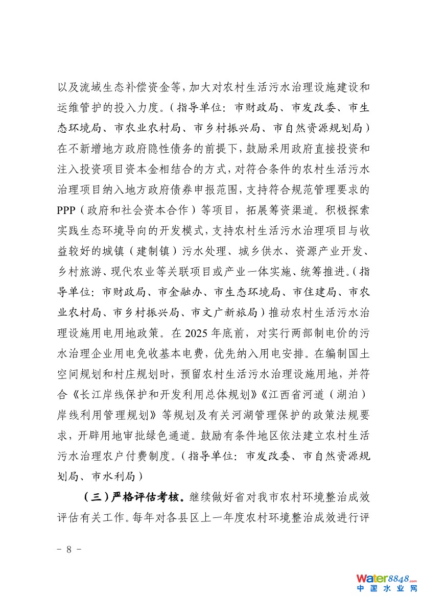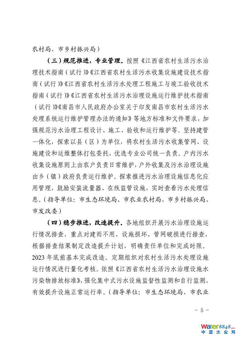 為深入貫徹落實黨中央國務(wù)院、省委省政府和市委市政府關(guān)于深入打好污染防治攻堅戰(zhàn)、改善農(nóng)村人居環(huán)境的決策部署,扎實推進(jìn)農(nóng)村生活污水治理工作,結(jié)合《江西省人民政府辦公廳關(guān)于印發(fā)江西省農(nóng)村生活污水治理行動方案(2021-2025 年)的通知》,南昌印發(fā)《南昌市農(nóng)村生活污水治理行動方案(2021-2025年)》。詳情如下:
