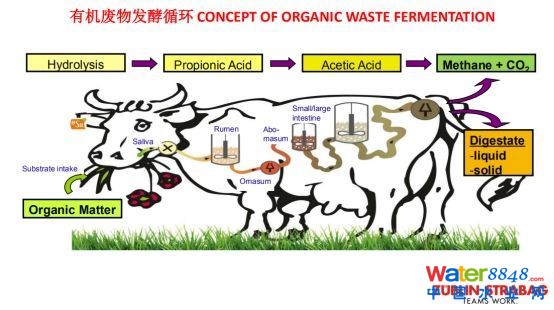 “有機廢物發(fā)酵循環(huán)就像牛的消化循環(huán),把草吃進去水解,通過牛的幾個胃和大小腸來消化處理,相當于生物的幾級處理器,最后出來就是沼氣和二氧化碳,以及液態(tài)和固體的沼渣沼液。整個過程是仿生牛在生態(tài)鏈起的作用。”彭濤介紹道。