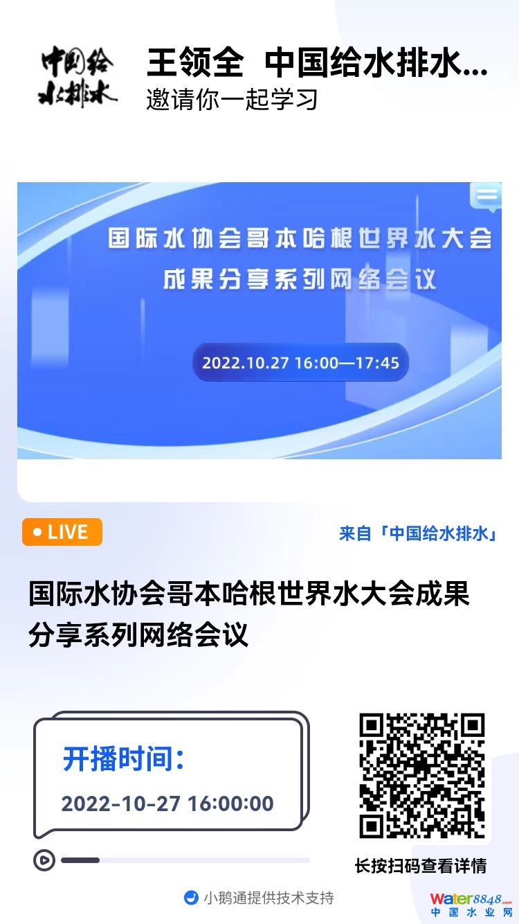 會議預告 | 國際水協(xié)會哥本哈根世界水大會成果分享系列網(wǎng)絡(luò)會議
