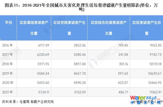滲濾液根據(jù)其產(chǎn)生的場所可以分為填埋場滲濾液、垃圾焚燒廠滲濾液、垃圾綜合處理廠滲濾液和垃圾中轉(zhuǎn)站滲濾液等。由于我國垃圾處理方式目前以填埋和焚燒為主,因此垃圾滲濾液處理需求主要在垃圾填埋場和垃圾焚燒廠。
