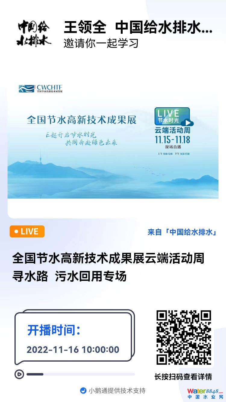 全國(guó)節(jié)水高新技術(shù)成果展云端活動(dòng)周尋水路 污水回用專場(chǎng)