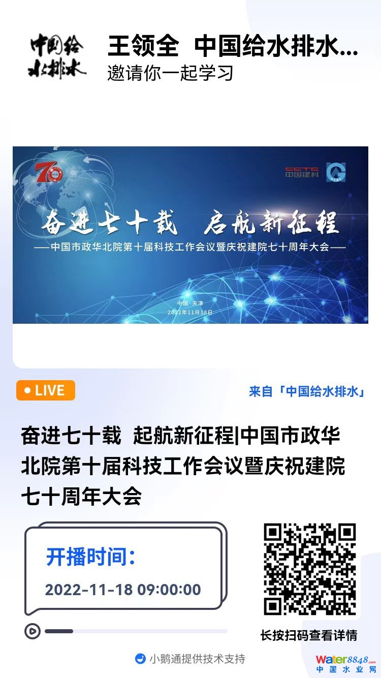 核心提示:奮進七十載 起航新征程|中國市政華北院第十屆科技工作會議暨慶祝建院七十周年大會 直播時間:2022年11月18日 9:30 2022-11-18 09:00:00 開始