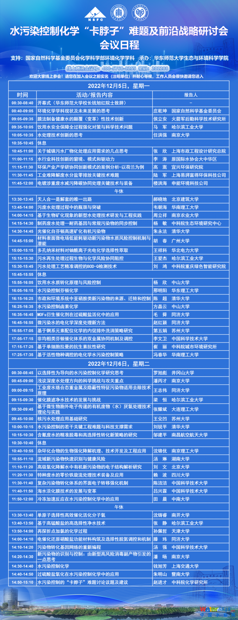 會(huì)議日程│水污染控制化學(xué)“卡脖子”難題及前沿戰(zhàn)略研討會(huì) 由國(guó)家自然科學(xué)基金委員會(huì)化學(xué)科學(xué)部“科技專(zhuān)項(xiàng)”支持