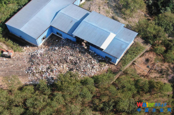圖2:2022年11月7日,督察組現(xiàn)場(chǎng)使用無(wú)人機(jī)拍攝,元江縣垃圾焚燒廠露天堆存生活垃圾。